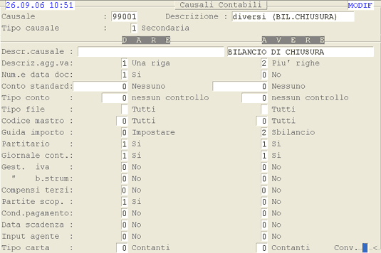 Causale 9001 - Bilancio Chiusura a Diversi