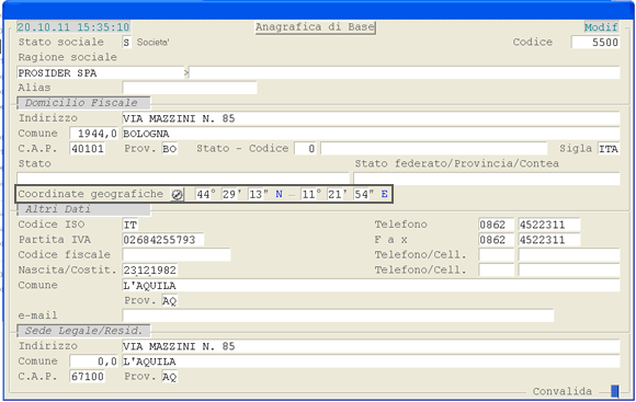 Anagrafica Clienti: implementate Coordinate Geografiche