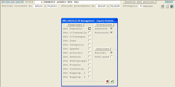 Nell'Inquiry a video delle Statistiche del Periodo sono state realizzate le implementazioni di seguito descritte.