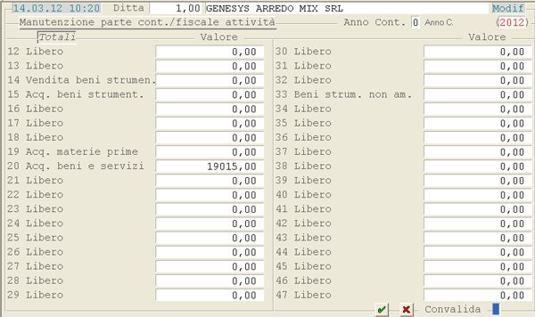 Relativamente ai Dati Contabili della Ditta, è stata eliminata la videata riportante i dati delle Retribuzioni e sono state rimosse alcuni Voci presenti nella 2° videata.