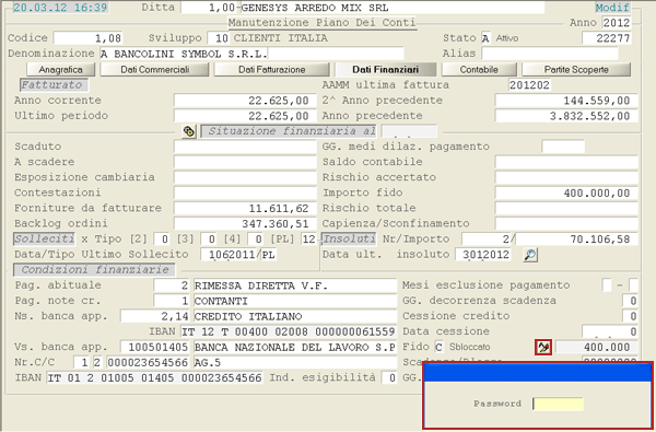Anagrafica Clienti/Fornitori: implementata password su Dati Fido
