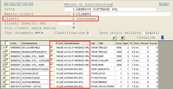 Nella funzione di Assegnazione automatica dei Metodi di Distribuzione, se l'indicatore tipo Clienti risulta impostato a 2 - Conti Consegna, nel data-grid di selezione dei Conti è stata implementata la visualizzazione del Rapporto Contabile associato a ciascun Conto Consegna.