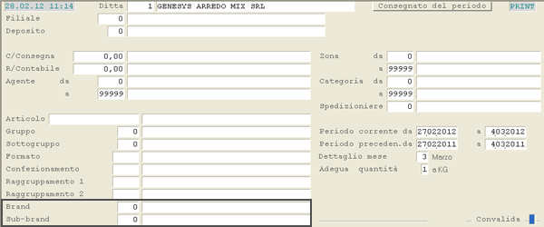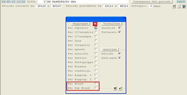 Conseguentemente, sia il Brand che il Sub-brand sono stati introdotti come possibili campi di raggruppamento nella seconda videata. Nella window di selezione dei raggruppamenti, inoltre, è stato implementato il pulsante reset