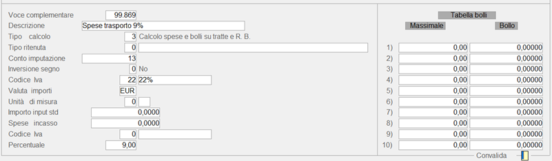 Nel caso i codici di voci complementari successivi al codice 99859 risultano già presenti occorre, prima di indicare sul cliente un codice spese trasporti superiore a 9, occorre crearne dei nuovi e modificare quelli già presenti nel range assegnato.