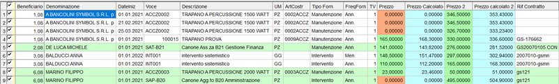 Quando viene messa a video la lista delle voci, vengono evidenziati in celeste i prezzi ricalcolati secondo il tipo e il valore dell’aggiornamento scelti dal cliente.