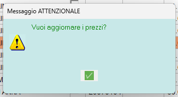 Dopo aver selezionato le voci alle quali ricalcolare i prezzi, convalidando, verrà messo a video il seguente messaggio attenzionale.