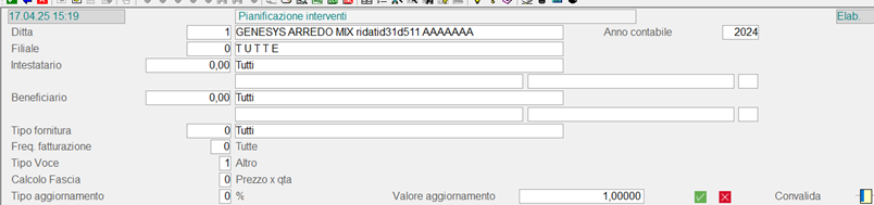 - Tipo aggiornamento ( 0 - %, 1 – Valore)