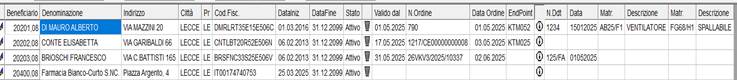a) Per ciascuno beneficiario, è proposto il codice fiscale, i riferimenti dell’ordine NSO, i riferimenti del DDT fittizio ed il codice e descrizione di almeno due apparecchiature in dotazione;