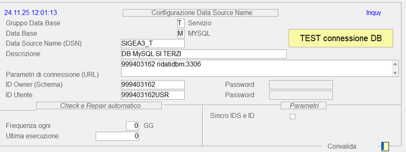 Esempio inserimento Configurazione DB: