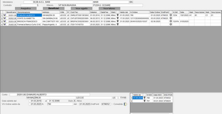 Sempre nella stessa funzione, solo se i contratti prevedono la gestione “Multi beneficiario”, le implementazioni sono invece le seguenti: