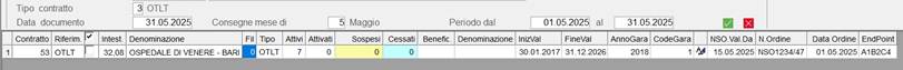 Nel data-grid dove visualizzati i singoli contratti è proposto l’ordine NSO con, se valorizzata, la data di inizio validità. Anche in questo caso è possibile inserire un nuovo ordine NSO con data validità diversa oppure modificare i riferimenti di quello già esistente.