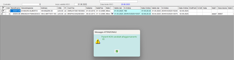 Nelle funzioni relative alla “Gestione dei contratti in abbonamento”, la gestione degli ordini NSO è stata legata ad un periodo di inizio validità, pertanto, sarà richiesto di indicare da quale data l’ordine NSO ed i sui estremi decorrono. Introducendo questa possibilità sarà mantenuto uno storico che permetterà, nel caso una fattura debba essere riemessa dopo l’aggiornamento dei nuovi riferimenti, di non doverti prima ripristinare sui contratti/beneficiari. Il controllo della data di inizio validità sarà effettuato in base alla data del documento.