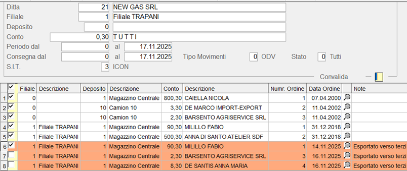Il sistema segnala eventuali ordini già esportati e consente, se necessario, di effettuarne una riesportazione forzata.