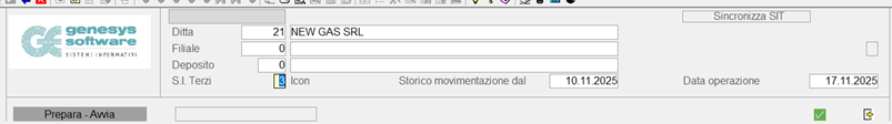 Dopo aver impostato Ditta e Filiale, viene mostrata una maschera di selezione che permette di definire: