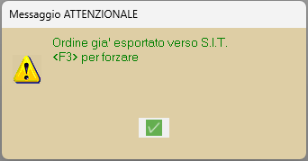 Il sistema mostra un messaggio di attenzione, dove ricorda che l’ordine è già stato esportato.