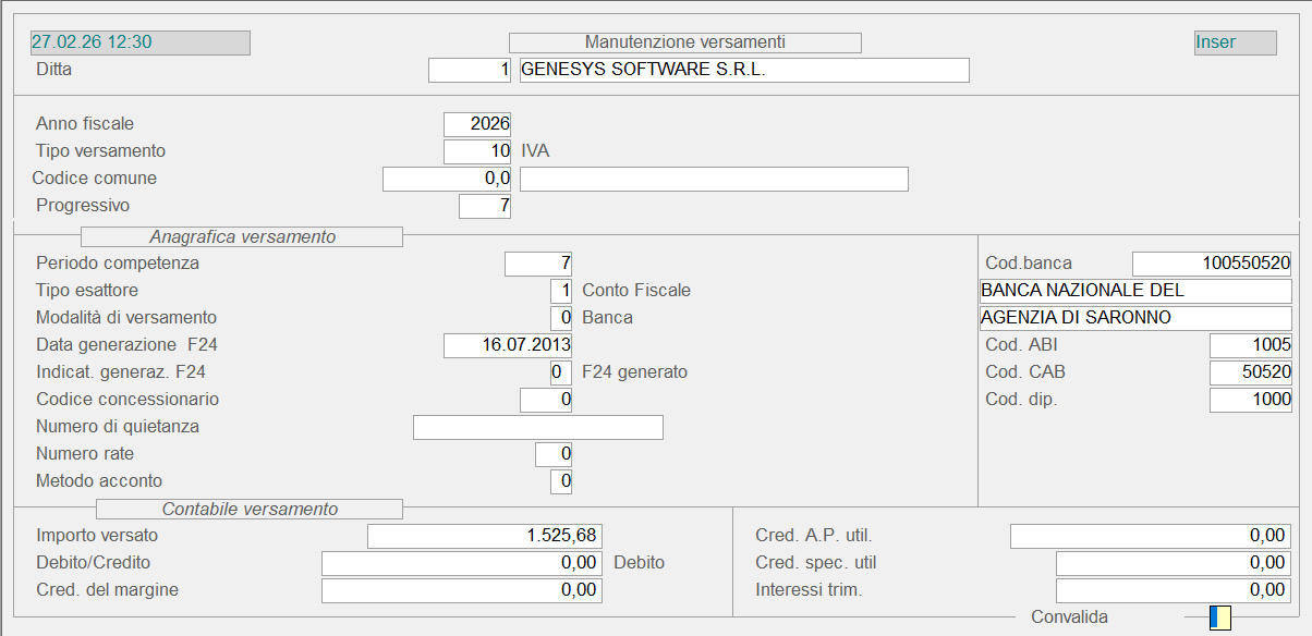 3.15.2.1 - Manutenzione Versamenti Imposte