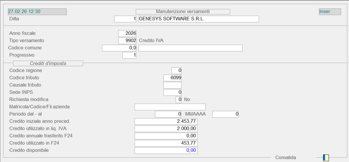 - Credito IVA (Tipo Versamento 9902)