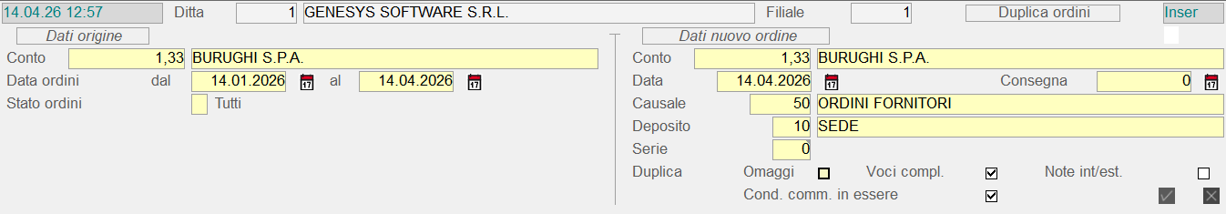 Sono inoltre previsti due appositi check-box, che permettono di personalizzare i dati da duplicare sul nuovo Ordine: