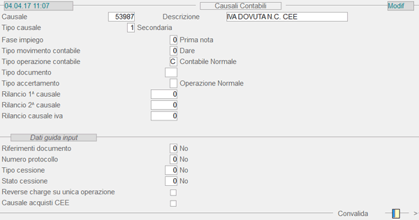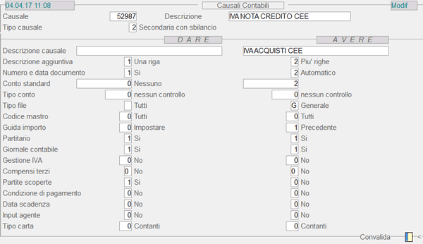 Causale 5160 - Nota Credito Acquisti CEE (solo Registro Acquisti)