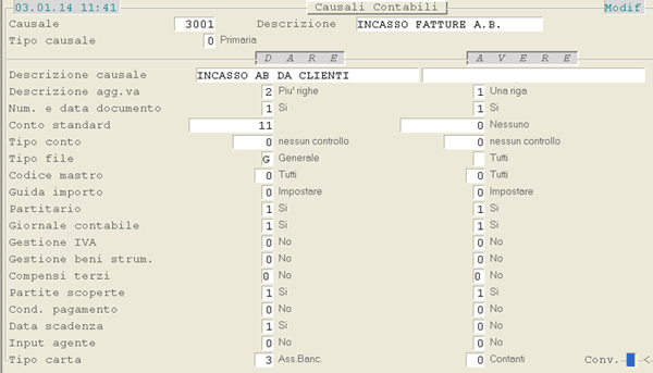Causale 3.001 - Incasso Fatture A.B.
