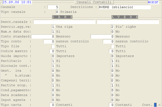 Causale 5 - Avere (Sbilancio)