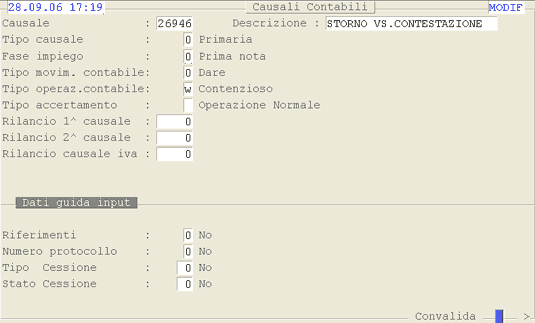 Causale 26946: 1° videata.