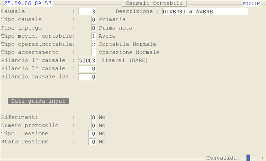 Causale 50003: 1° videata.
