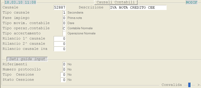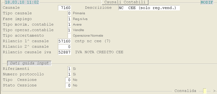 Causale 57160: 1° videata