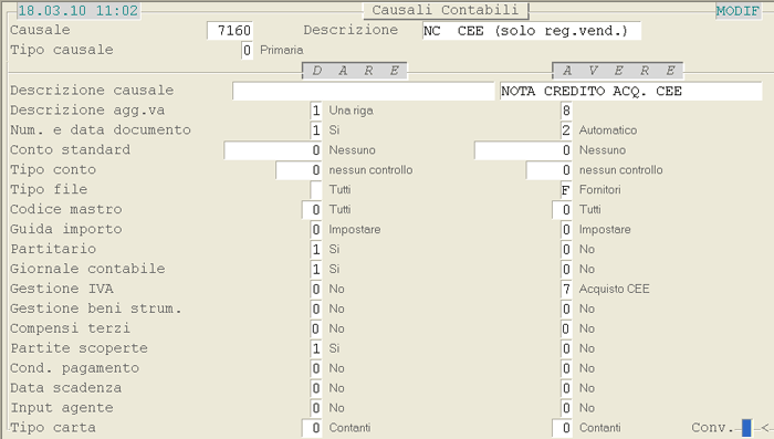 Causale 7160: 1° videata