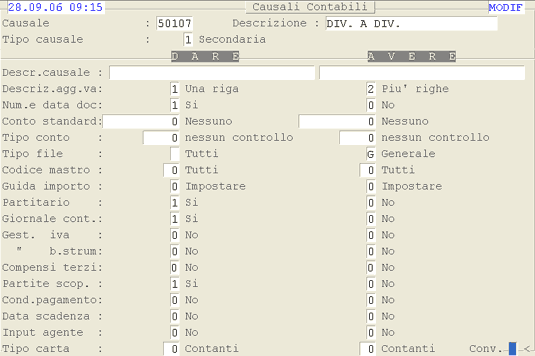 Causale 7: 1° videata.