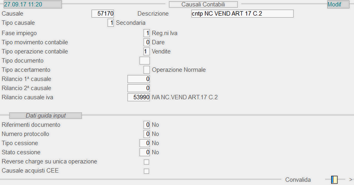 Causale 57.170: 1° videata