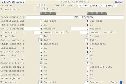 Causale 15300: 1° videata.