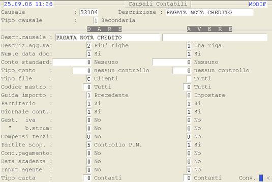 Causale 53104: 1° videata.