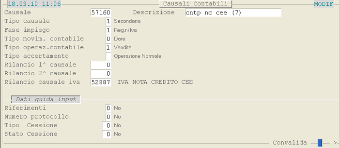 Causale 57160: 1° videata