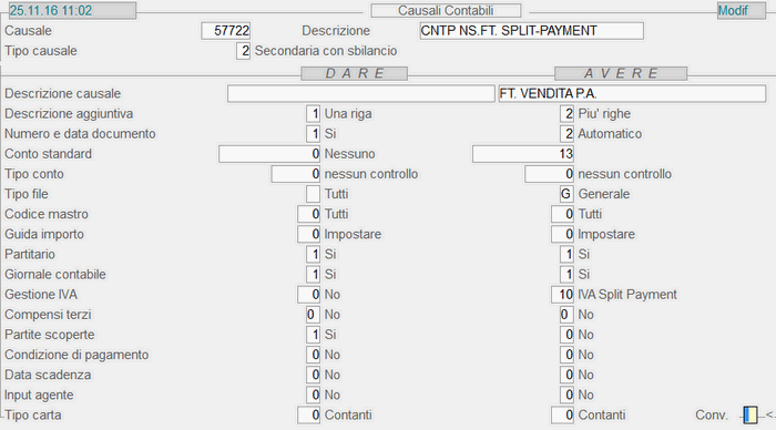 Causale 7.722 - Fattura Vendita Split-Payment