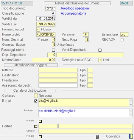Per quanto riguarda la modalità di definizione del Profilo da associare al Metodo di Distribuzione, si prega di contattare il Servizio Assistenza della genesys software.